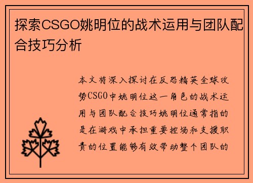 姚明,这位篮球巨星,以其超凡的身高和卓越的技术,成为了全球篮球界的一面旗帜。他在投篮时踮脚的独特技巧,不仅展现了他出色的身体素质,更是体现了他对篮球运动深刻理解和精湛技艺的结合。本文将从四个方面详细解析姚明踮脚投篮的技巧与魅力,包括他的身体条件与技术基础、心理素质与比赛策略、踮脚投篮过程中的细节要领,以及这种投篮方式在实战中的应用与效果。通过这些分析,我们将更深入地领略这位篮球巨星所展现出的独特风...